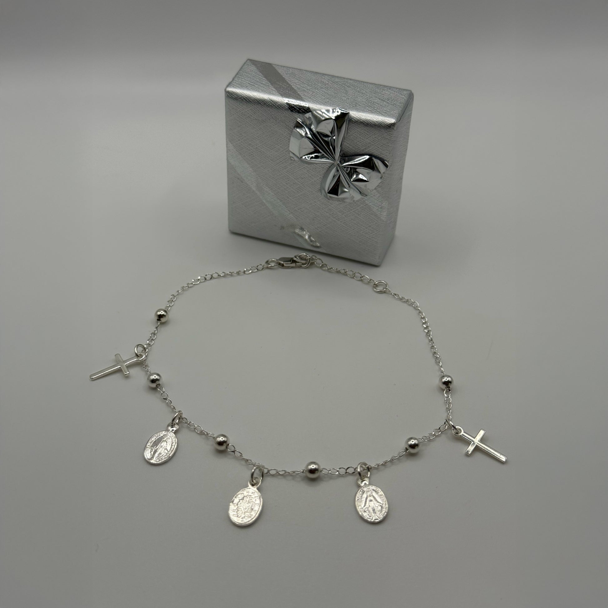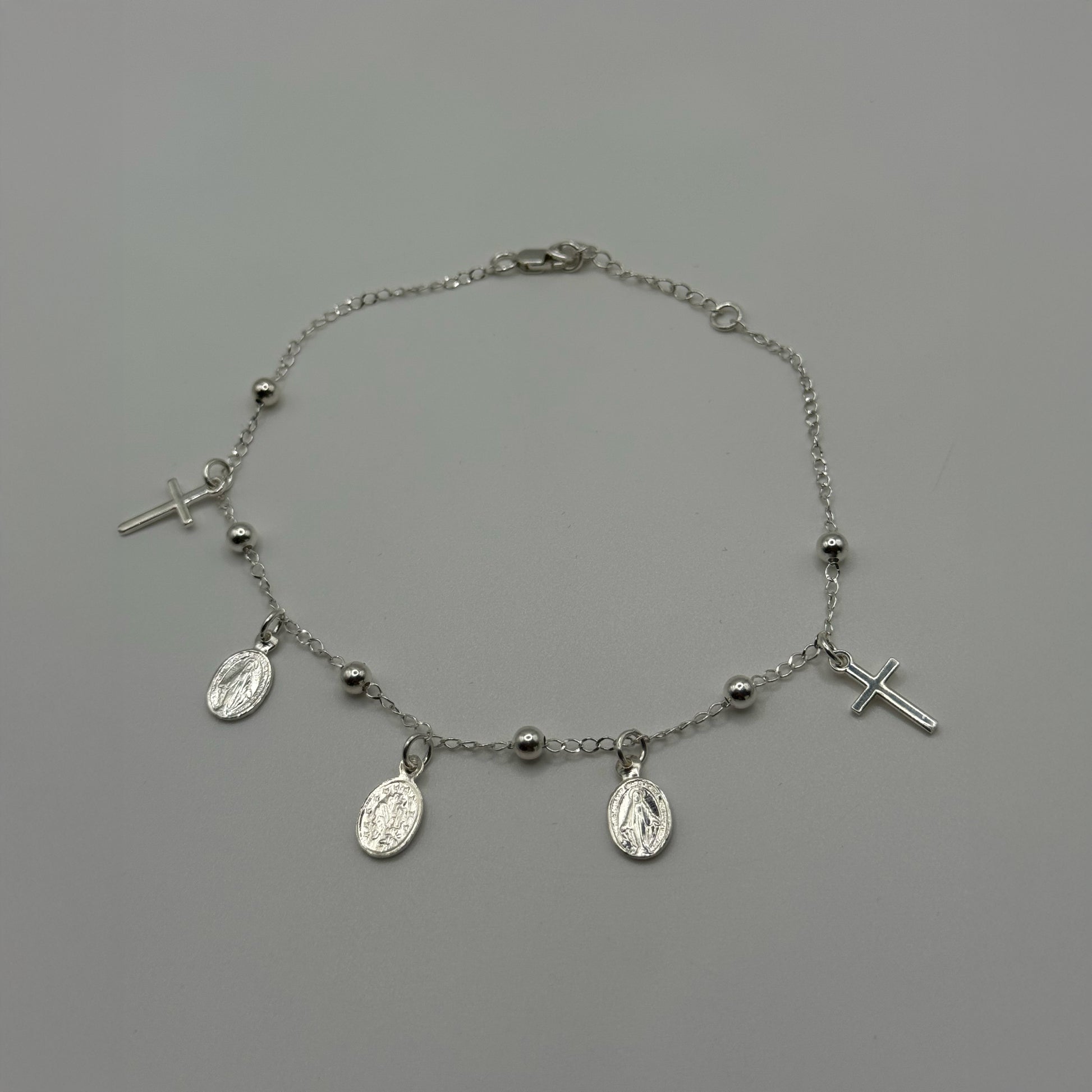 Tobillera con Dijes de Cruz y Medalla Milagrosa