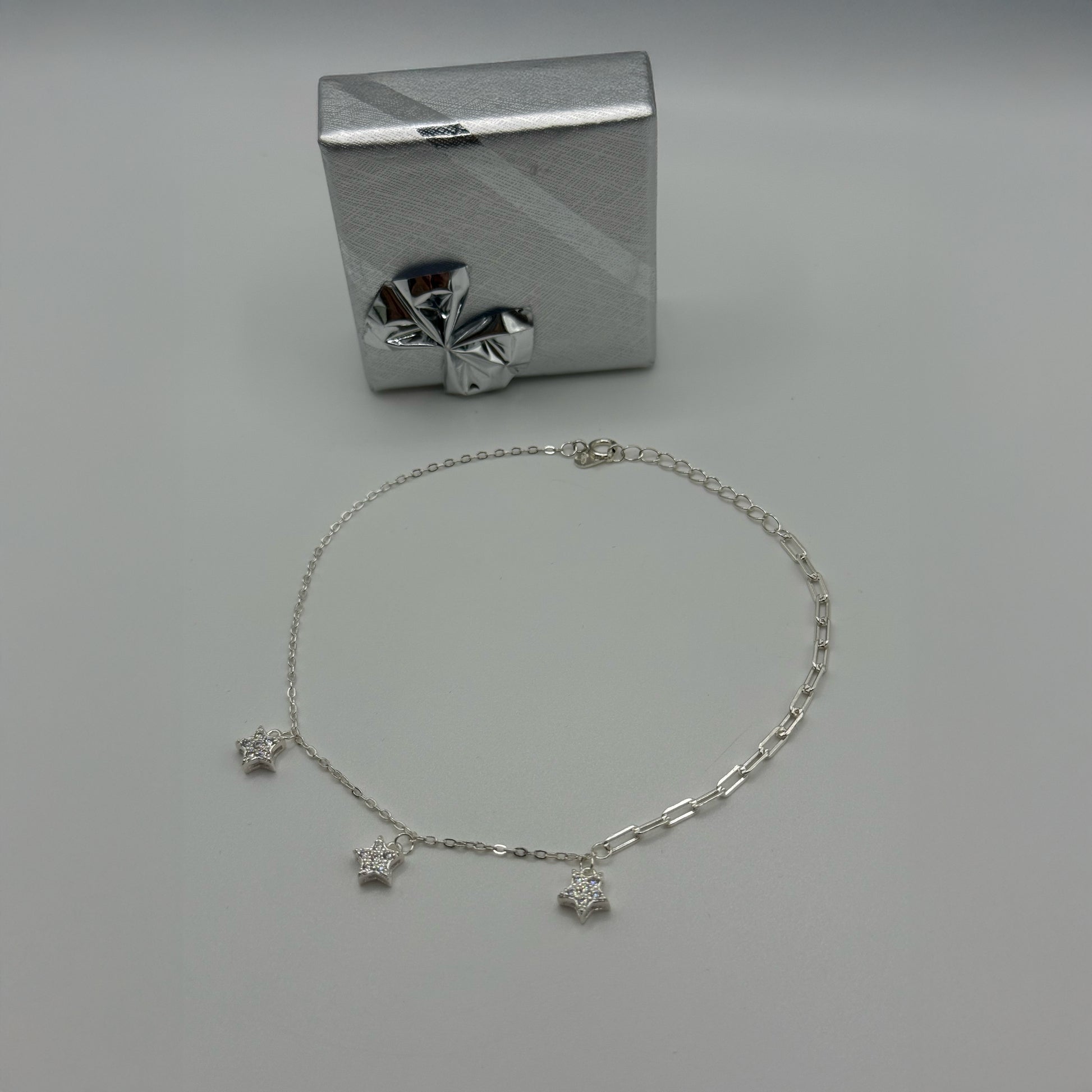 ✨Tobillera Estrellas. Diseño delicado, con eslabón largo y tres hermosos dijes de estrella con circones.